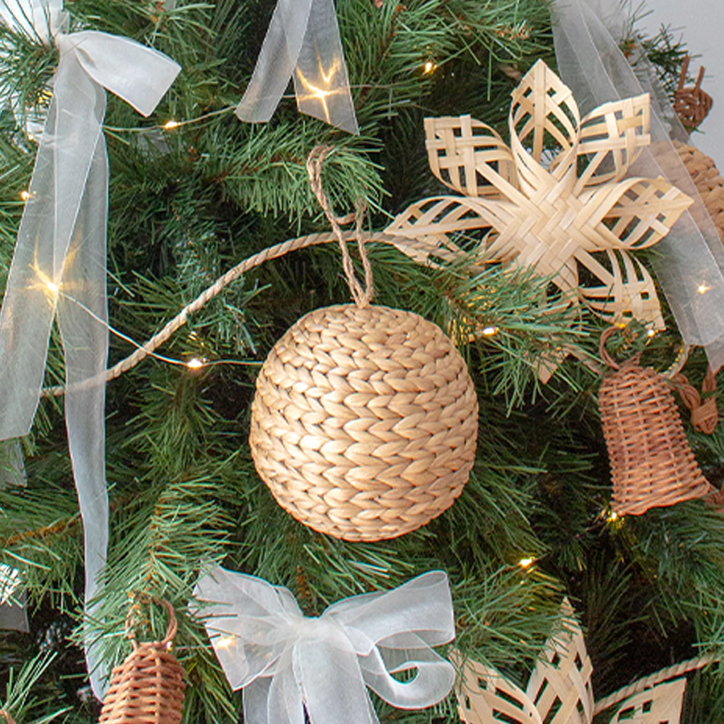 La versión más grande para sumar presencia y volumen. Esta esfera de jacinto de agua aporta textura y un look natural que transforma cualquier árbol o rincón. Perfecta para combinar con las de 10 cm y armar un juego de tamaños que queda impecable en composiciones navideñas.