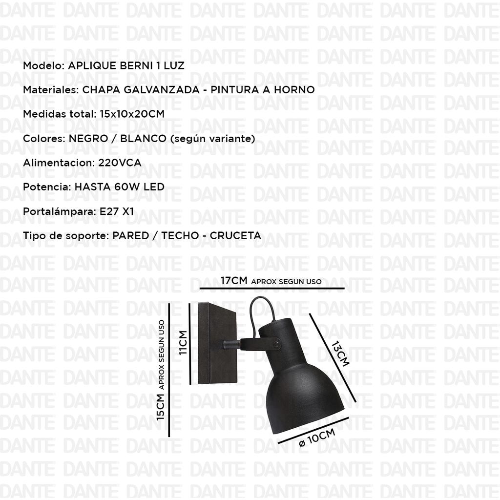 Compacto, funcional y con diseño. El Berni de 1 luz es ideal para iluminar pasillos, baños, escritorios o entradas.