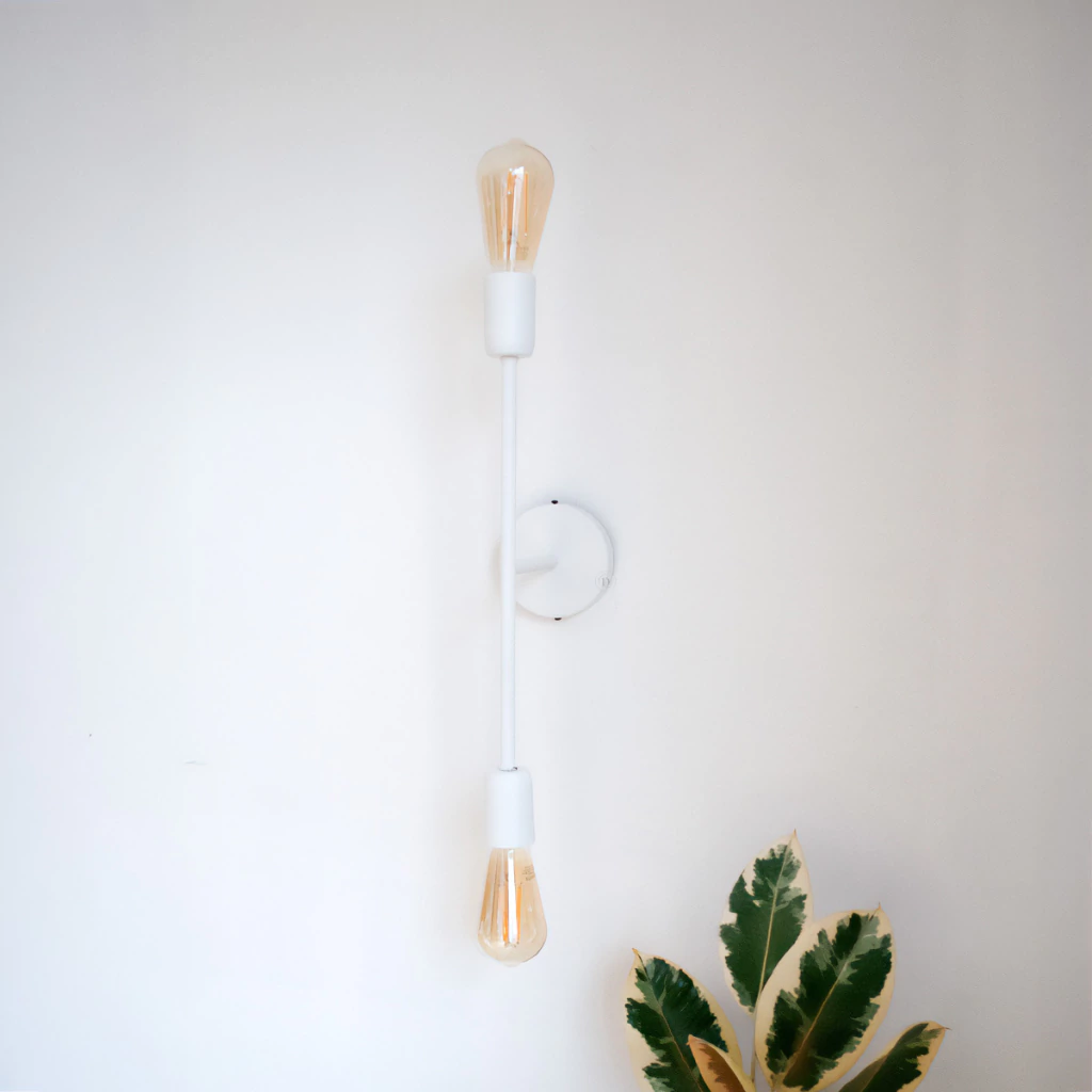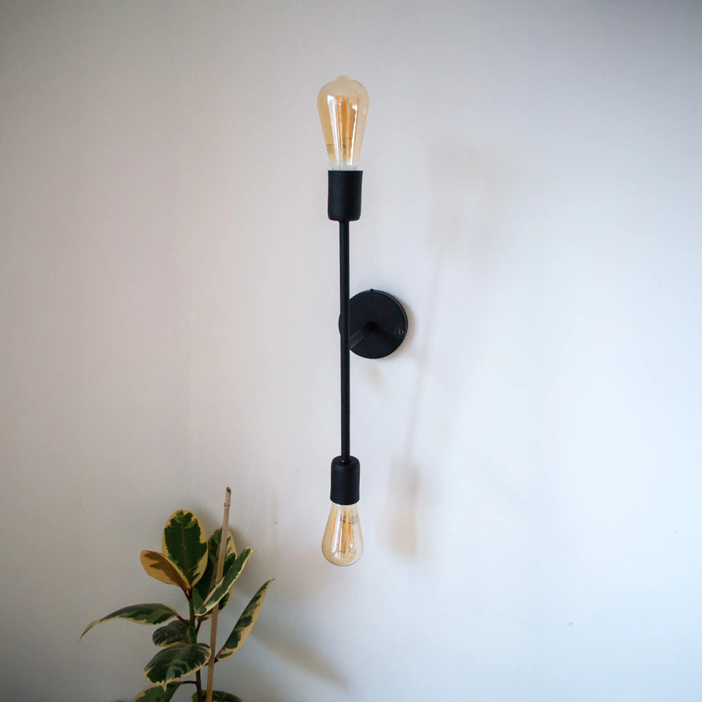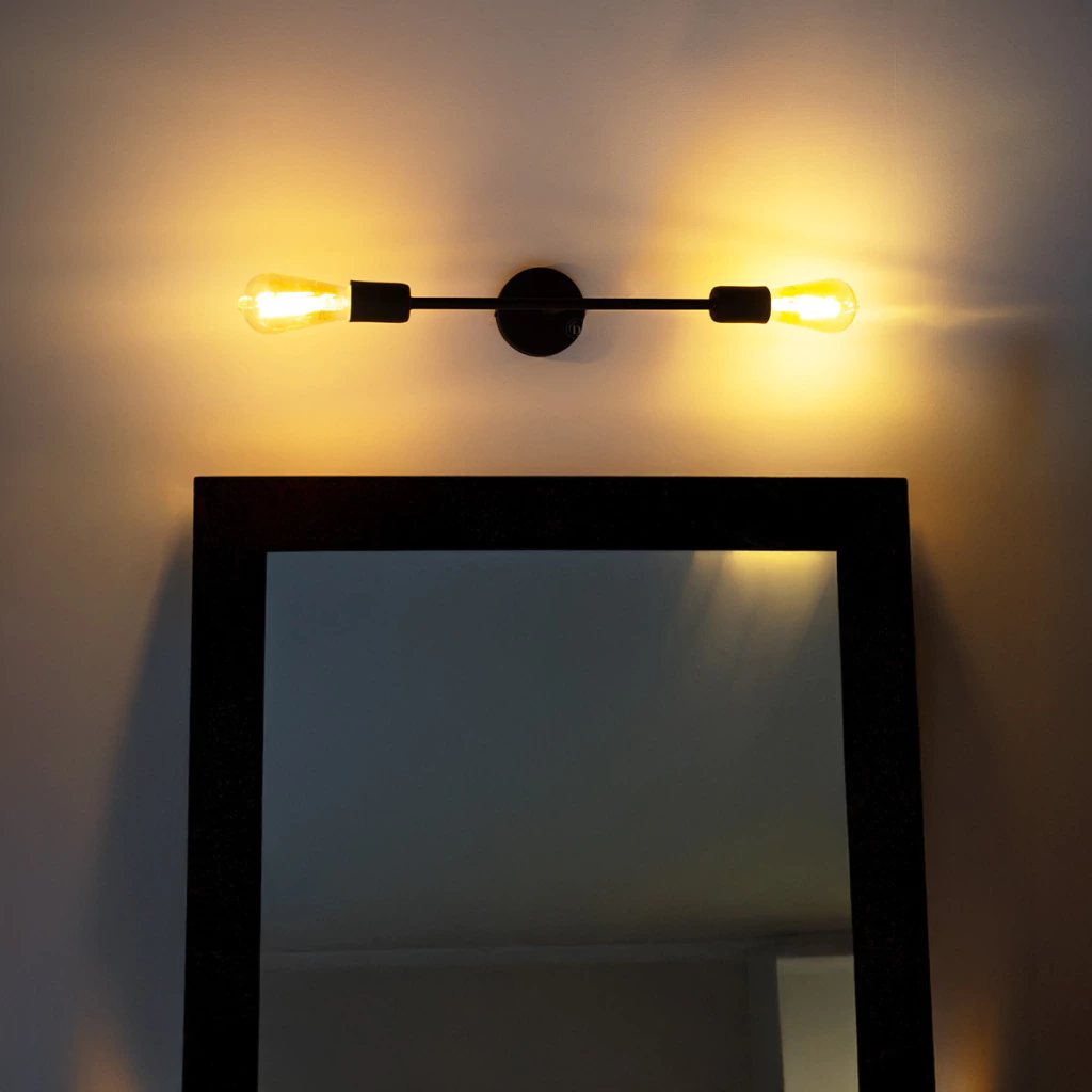 Este aplique de estilo industrial aporta carácter y versatilidad. Ideal como iluminación puntual en pasillos, galpones, cabeceras o espejos. Su formato horizontal con dos focos deja que la luz se distribuya de forma pareja y personalizada.