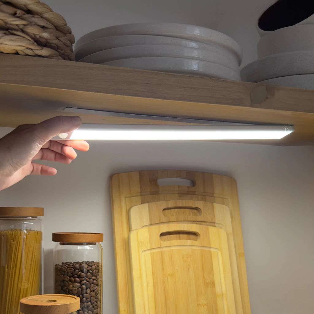 Este listón LED de 40 cm se adapta a múltiples espacios: cocinas, placares, pasillos o cajones. Súper liviano y fácil de instalar gracias a su base magnética, se pega sin herramientas y se recarga por USB-C.