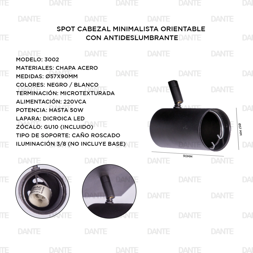SPOT CABEZAL DISEÑO MINIMALISTA ORIENTABLE CON ANTIDESLUMBRANTE