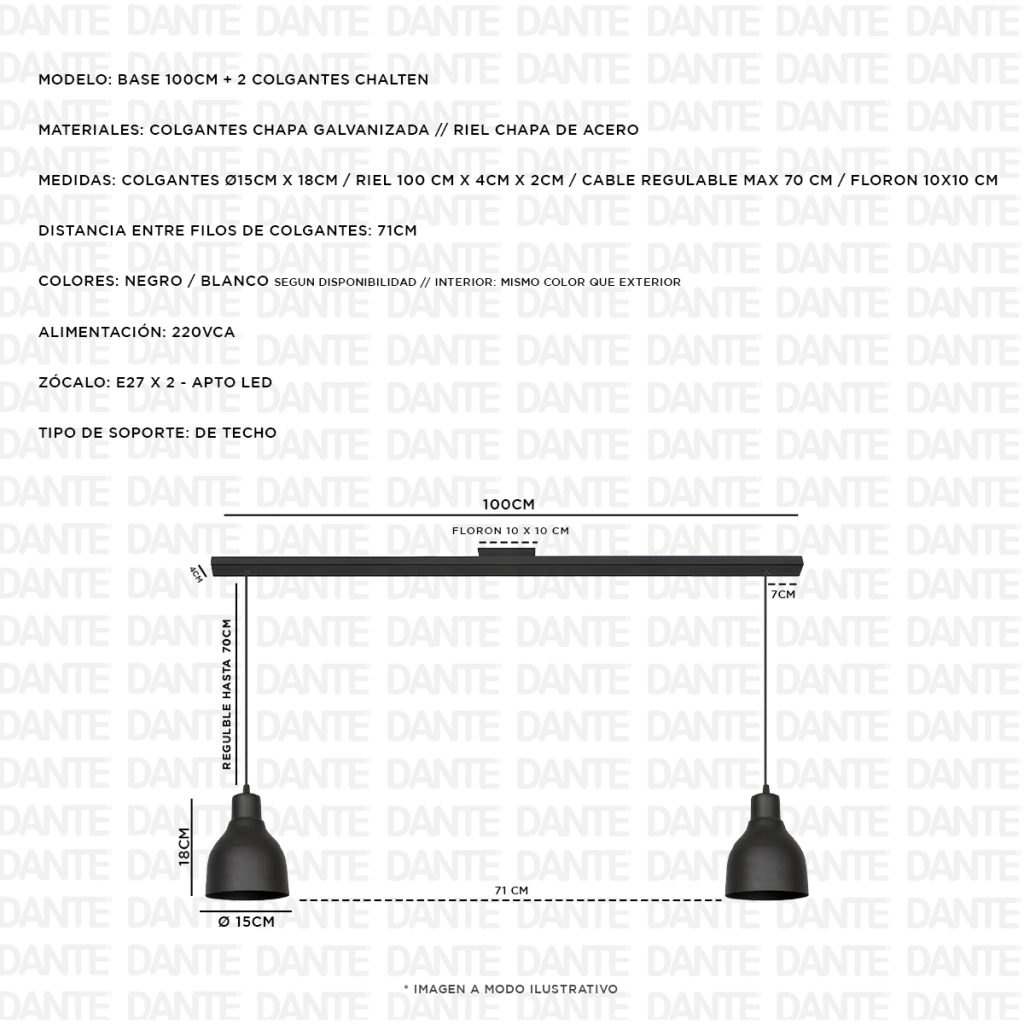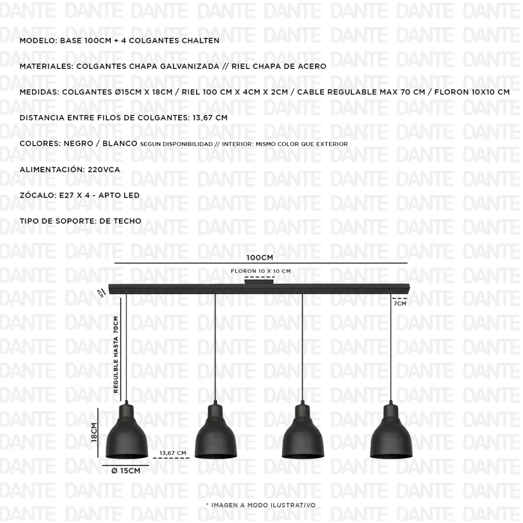 Colgante Chaltén Ø15 cm | 2 o 4 luces | Regleta de 1 metro | Estilo Industrial
