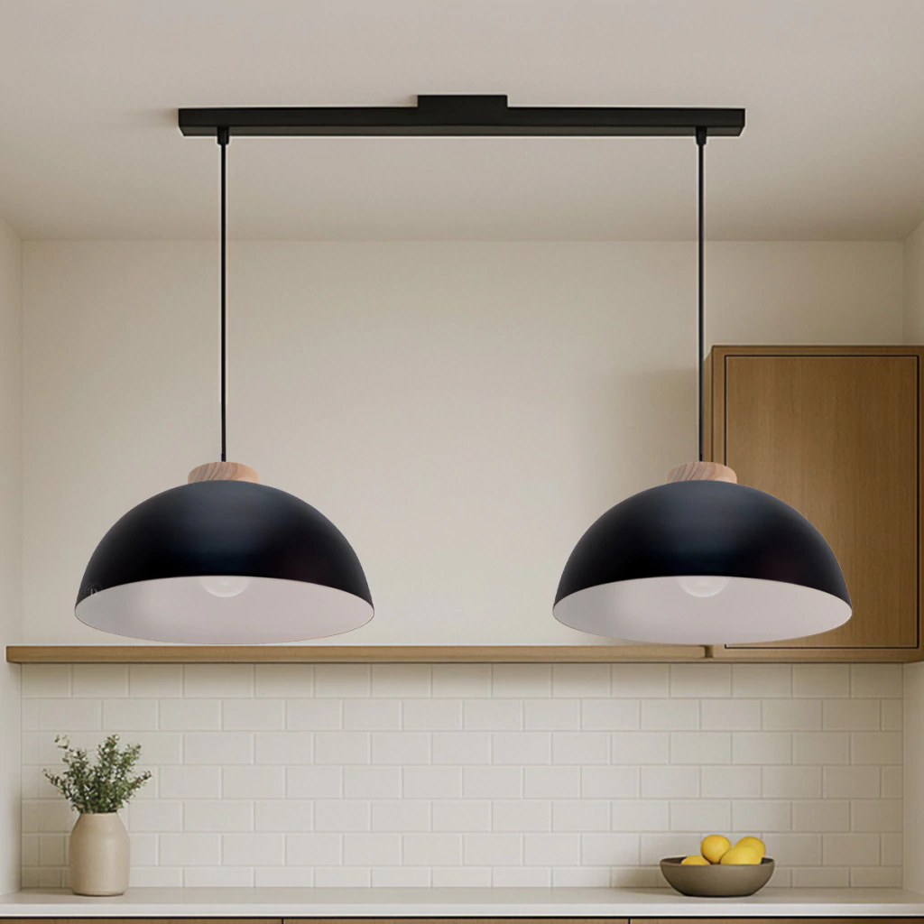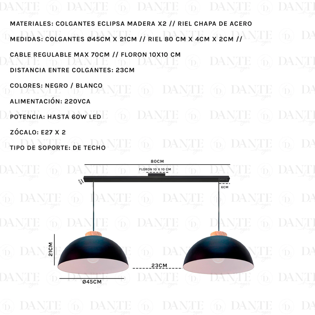 Colgante Eclipsa Doble Luz con Madera | Ø45 cm | Regleta de 80 cm