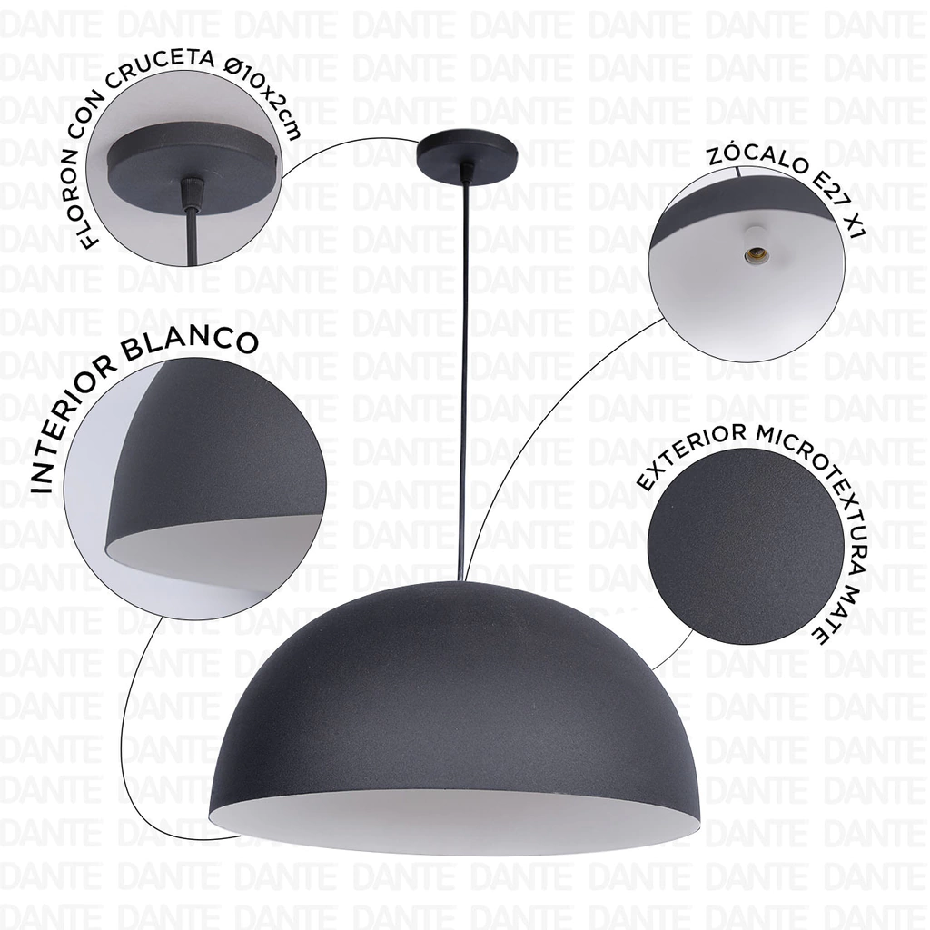 Si buscás una lámpara que combine presencia y funcionalidad, Eclipsa de 60 cm lo tiene todo. Su diseño tipo campana es clásico y atemporal, pero su tamaño XL la transforma en una pieza de alto impacto visual. El interior cobre le da carácter y solidez.