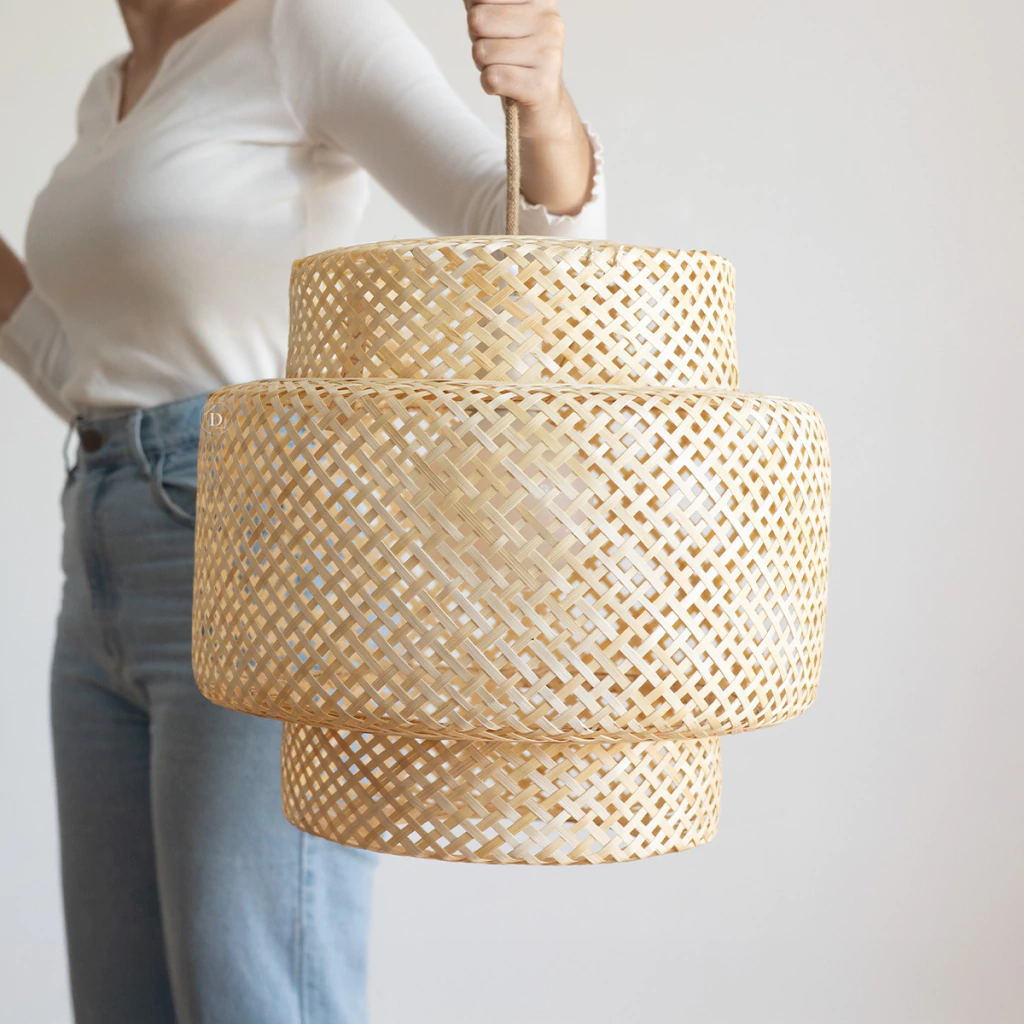💡 Lámpara Colgante Neko Small – Canasto de Bambú Ø40 cm | Lista para Instalar