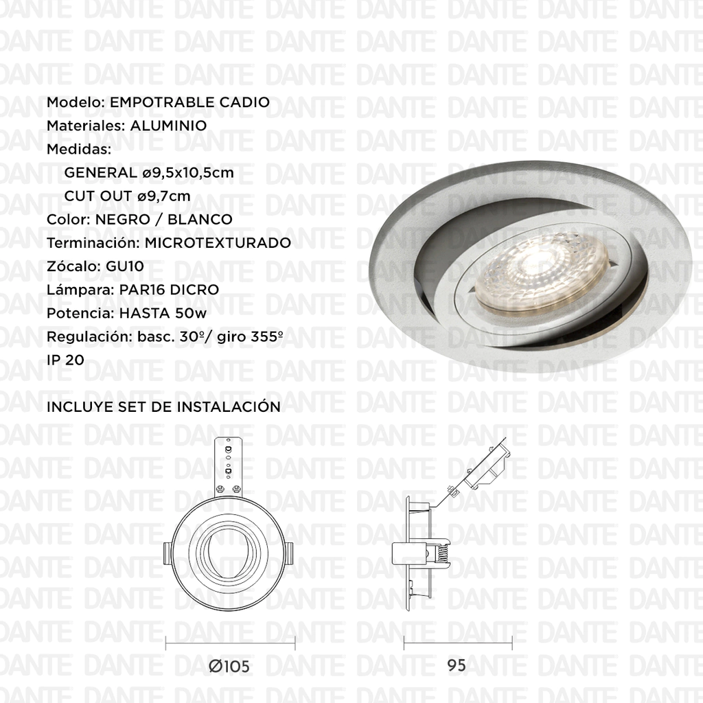 Empotrable basculante de iluminación general. Cuerpo de inyección de aluminio y bornera protegida.