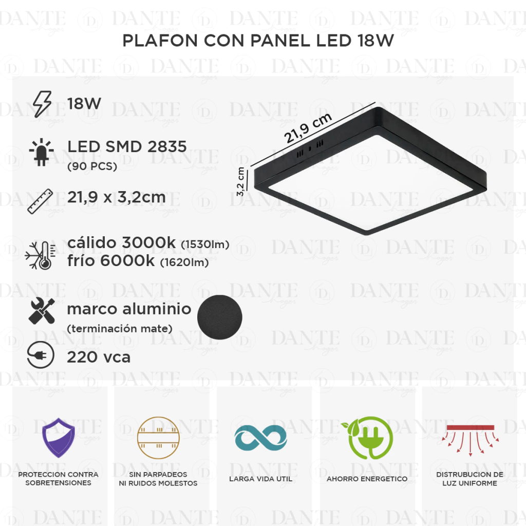 PLAFON PANEL LED 18W FRIO o CALIDO MARCO NEGRO MATE