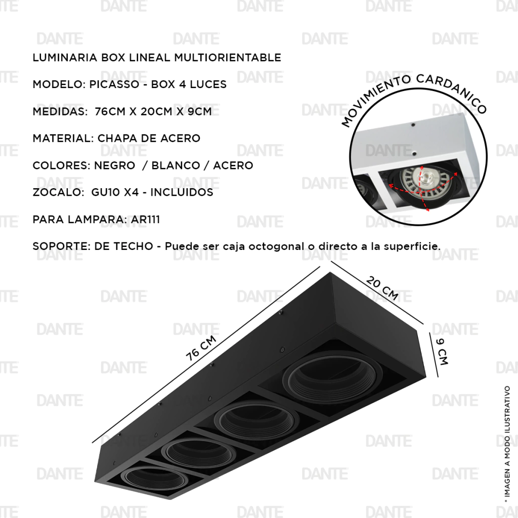 ¿Qué incluye? 1 (uno) PLAFON PARA 4 LAMPARAS AR111 + 4 (CUATRO) ZOCALO GU10