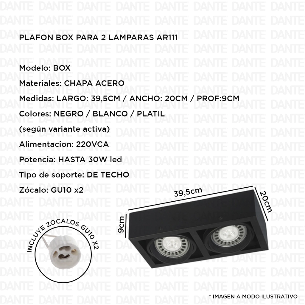 PLAFON CHAPA PARA 2 LAMPARAS AR111 Modelo: BOX 2L - PICASSO