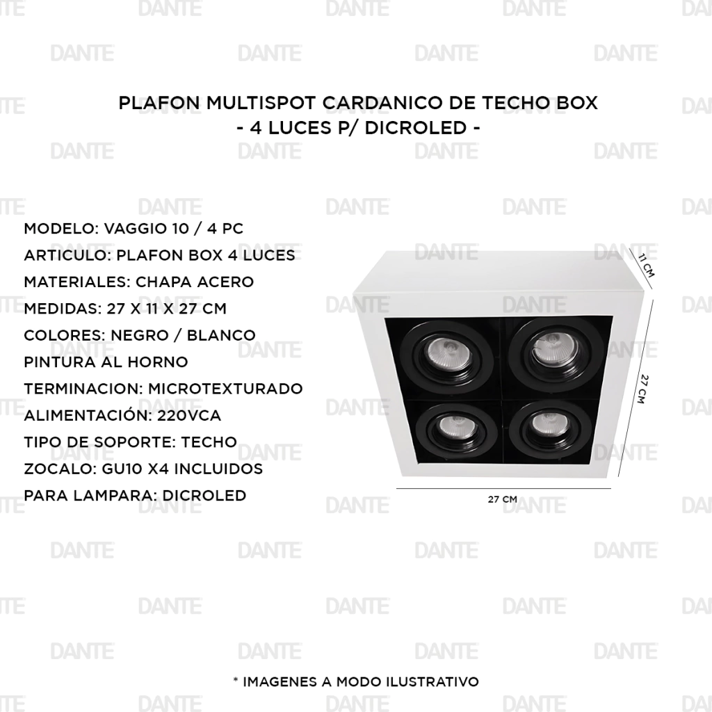 PLAFON MULTISPOT CARDANICO DE TECHO BOX - 4 LUCES P/ DICROLED -