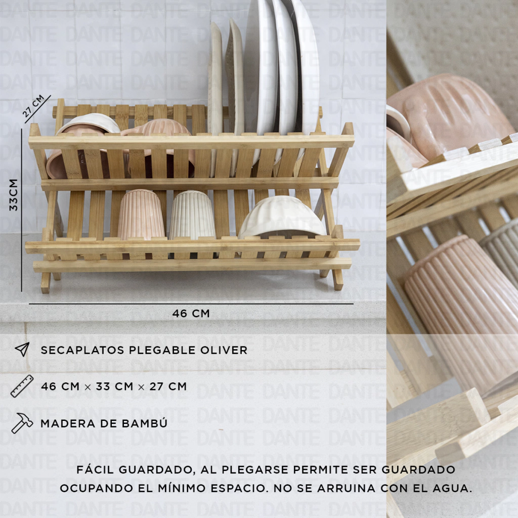 🍽️ Secaplatos 2 Pisos Plegable – Bambú | Modelo Oliver
