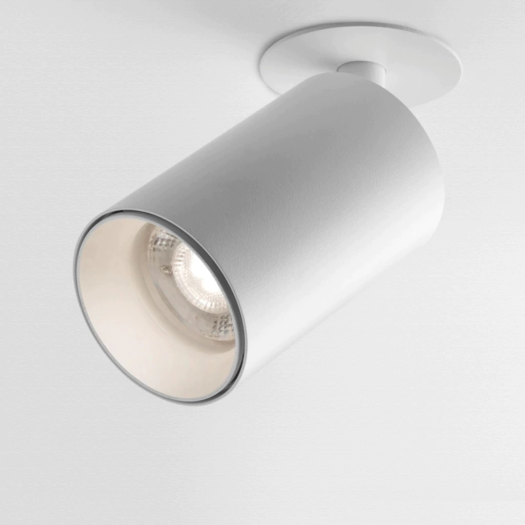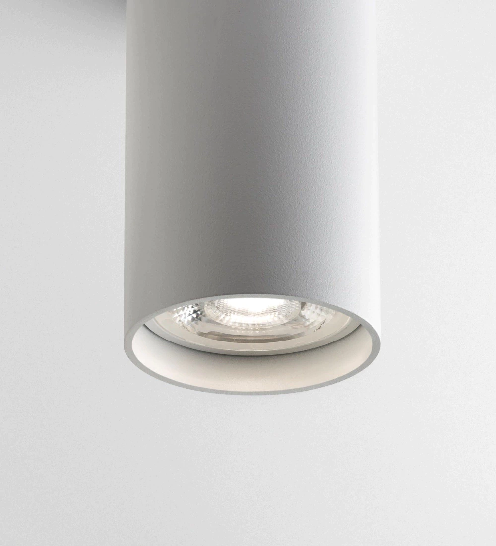 Cabezal cilíndrico orientable y de diseño minimalista. Con aro antideslumbrante para mayor confort visual.