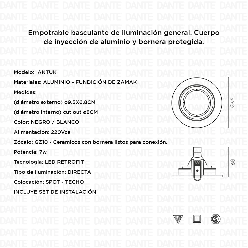 SPOT EMBUTIR BASCULANTE ALUMINIO GU10 ANTUK LUCENTE