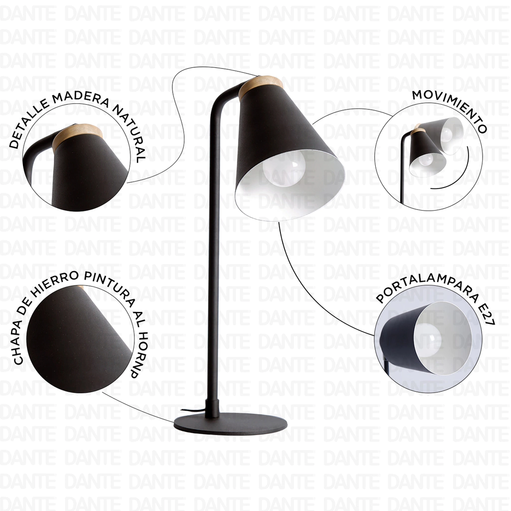 Velador Alejo – Cabezal Móvil con Detalle en Madera | Diseño Nórdico para tu Mesa